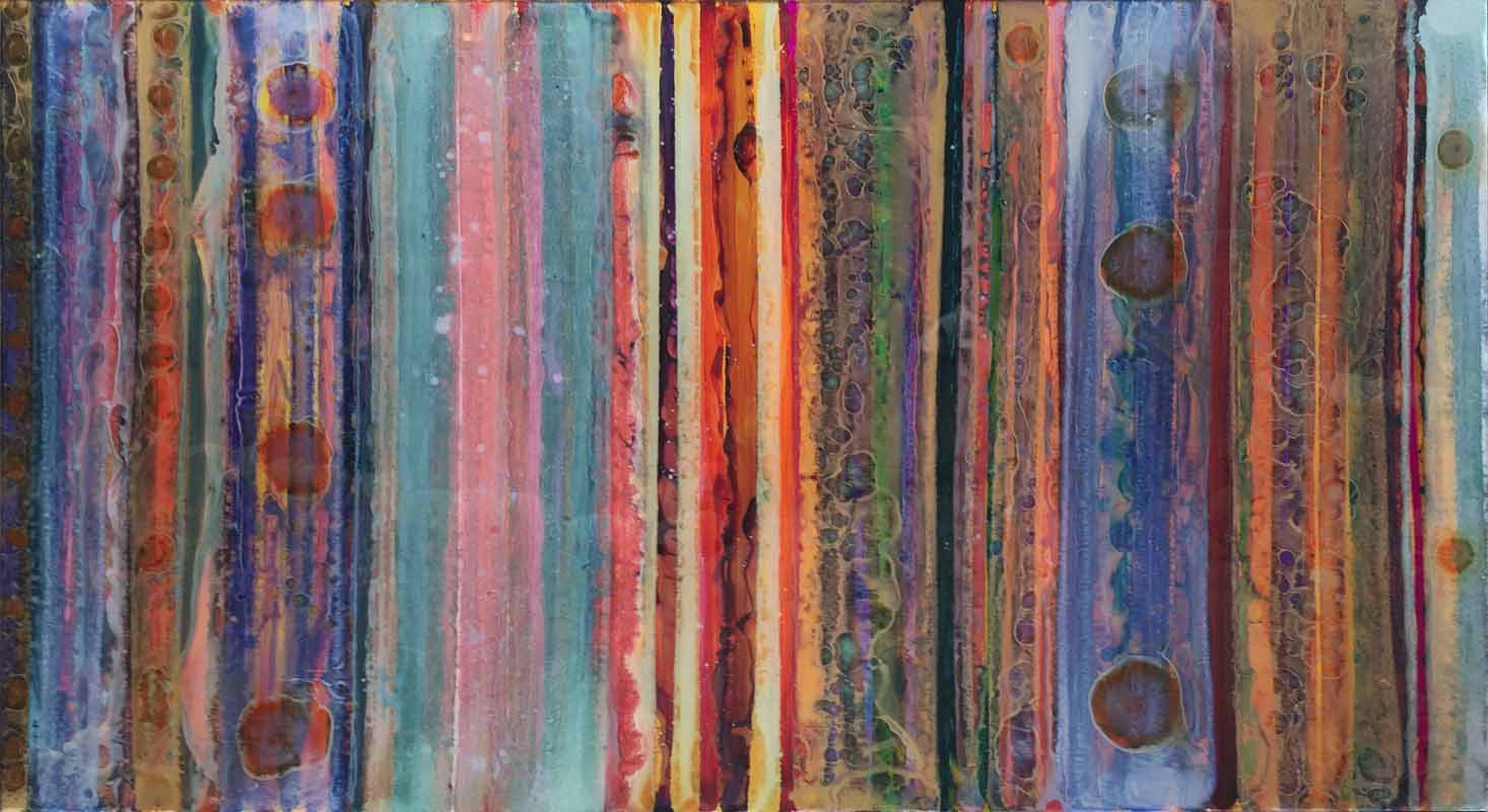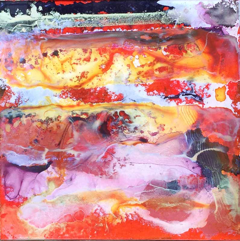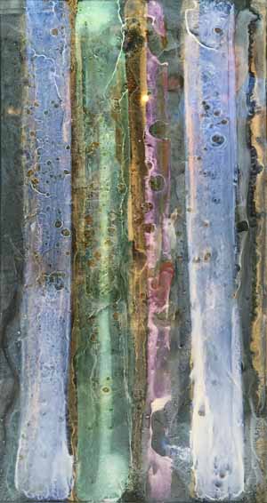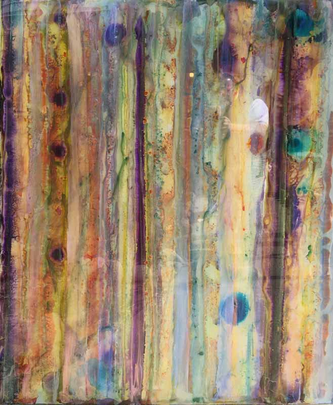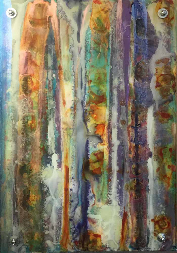 These pieces are the result of dozens of washes and layers of acrylic paint applied to the reverse side of 1/4" plexiglass